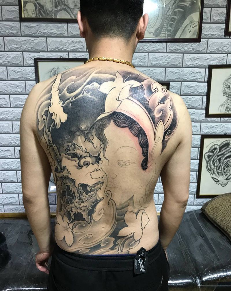• 黑灰满背纹身图案