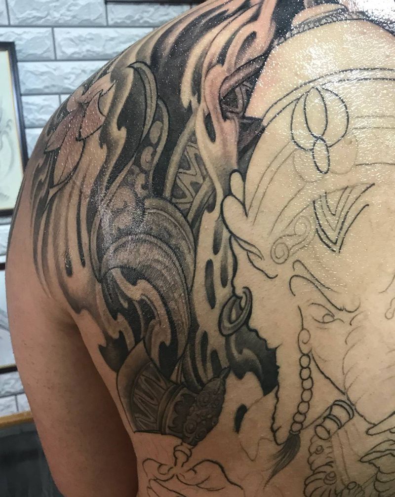 • 纹身吧推荐的披肩图腾半胛纹身图案作品展示