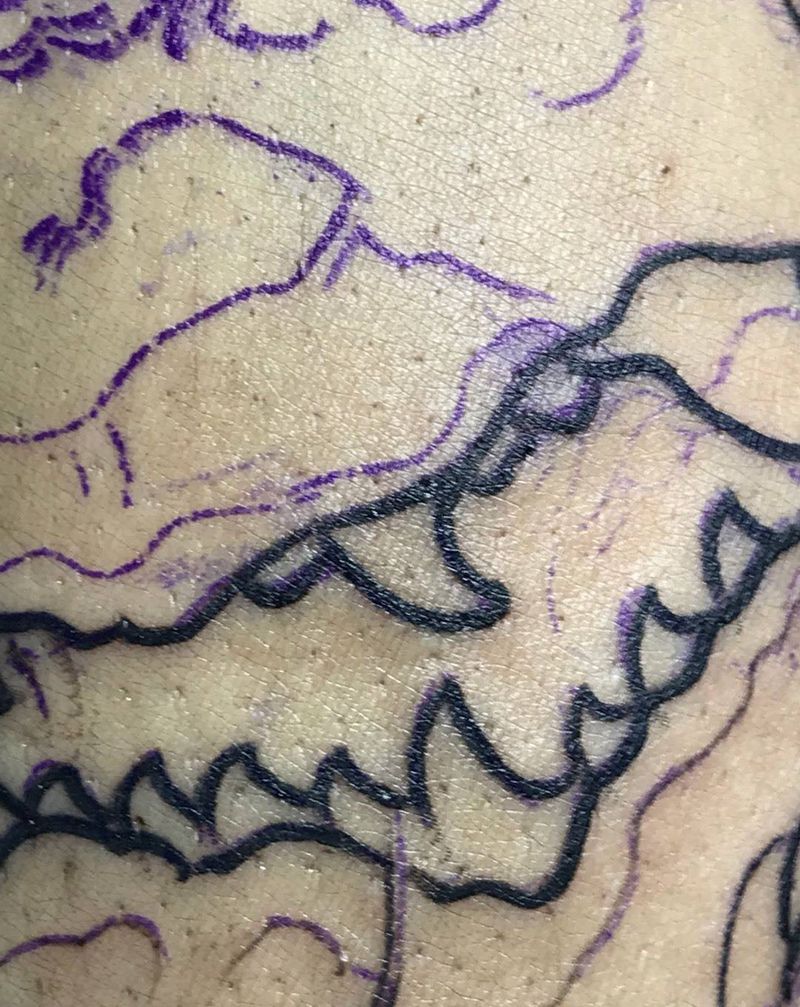 • T网红王老大花腿龙纹身图片_腿部新传统纹身图案