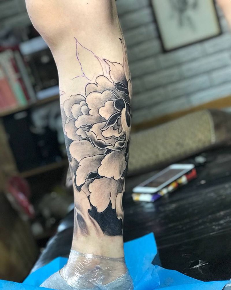 • T网红王老大花腿龙纹身图片_腿部新传统纹身图案