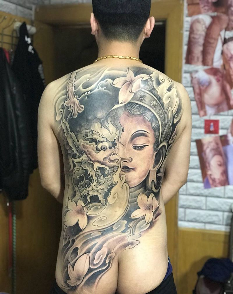 • 黑灰满背纹身图案