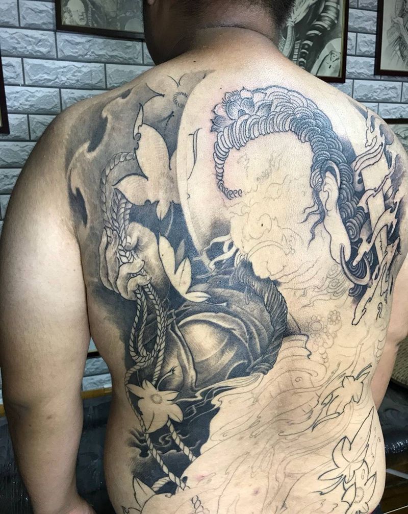 • T云龙九郎纹身图片_背部老传统云龙九郎纹身图案