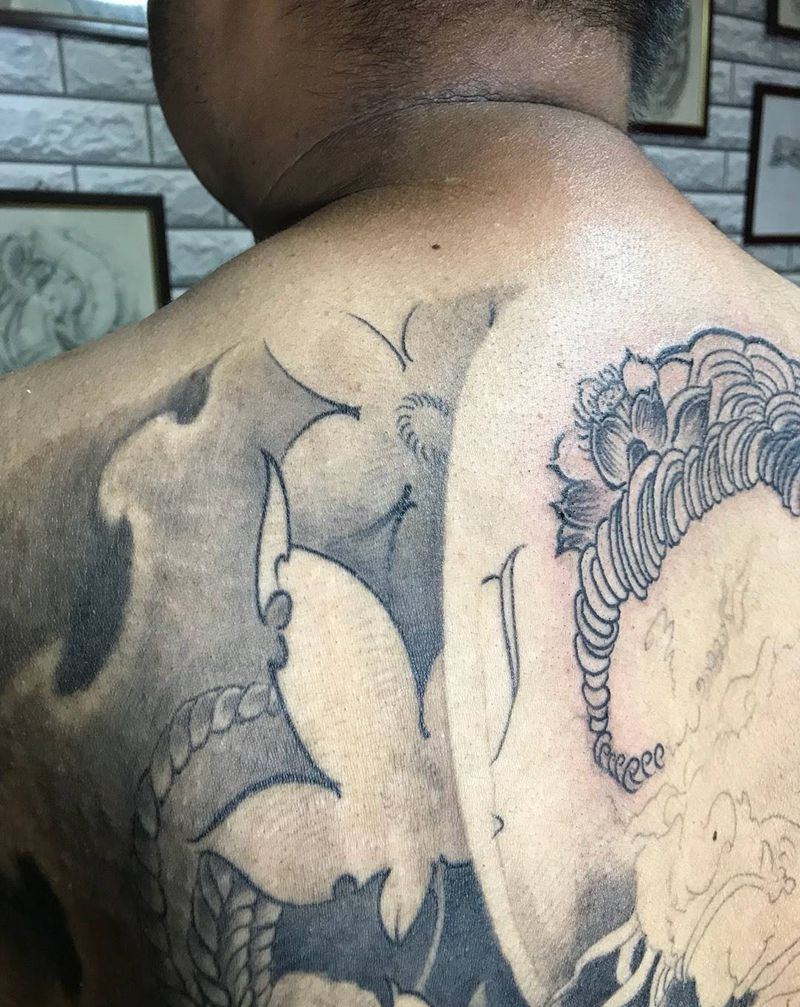 • 黑灰满背纹身图案
