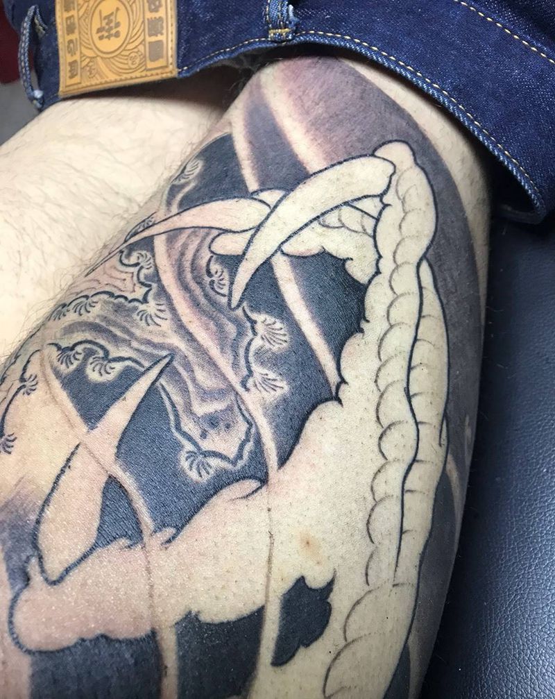 • T网红王老大花腿龙纹身图片_腿部新传统纹身图案