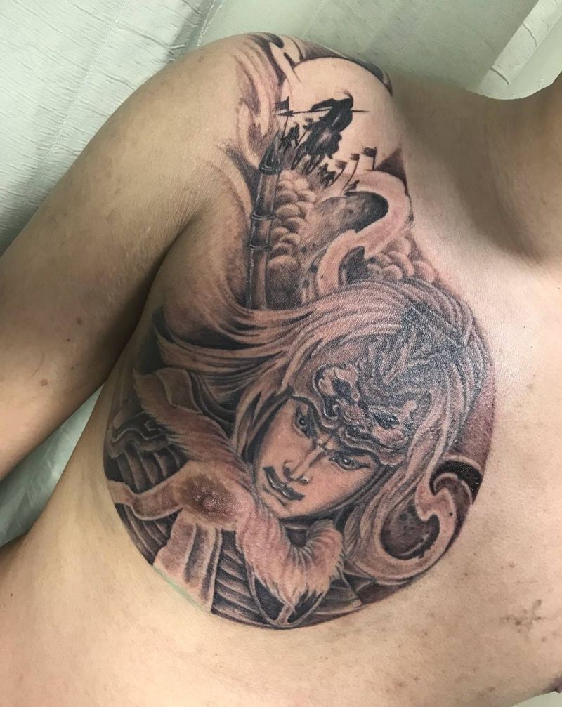 • 女性大花胸纹身_43张霸气漂亮的女性大花胸纹身图案作品