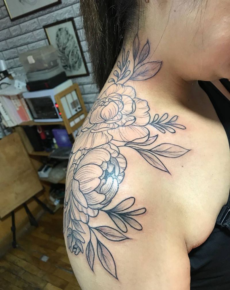 • 女性大花胸纹身_43张霸气漂亮的女性大花胸纹身图案作品