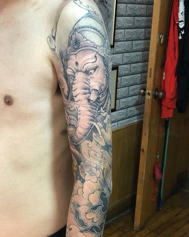 当前位置: 首页 >重庆市纹身店-北彫刺青纹身图案>象神花臂纹身图片