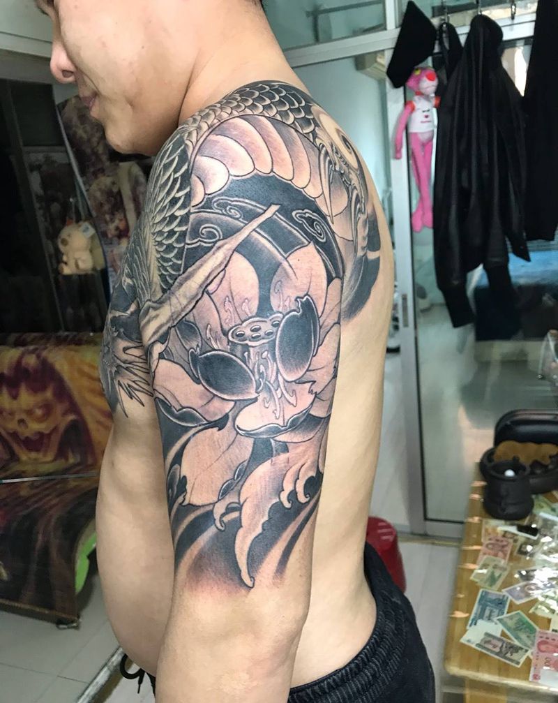 一组15张莲花纹身手