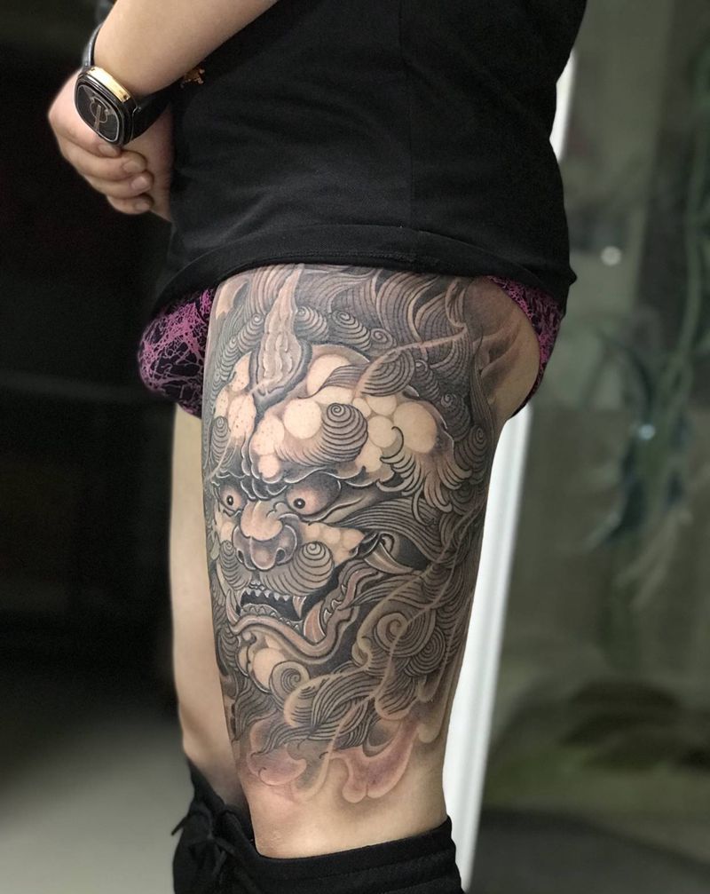 当前位置: 首页 >重庆市纹身店-北彫刺青纹身图案>唐狮纹身图片_腿部纹身图案