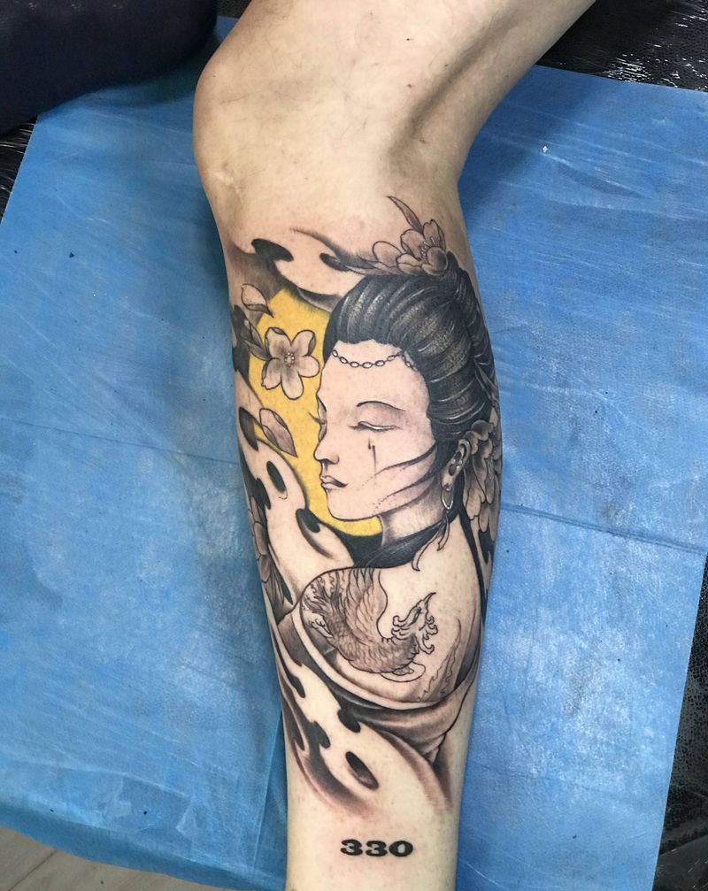 • T网红王老大花腿龙纹身图片_腿部新传统纹身图案