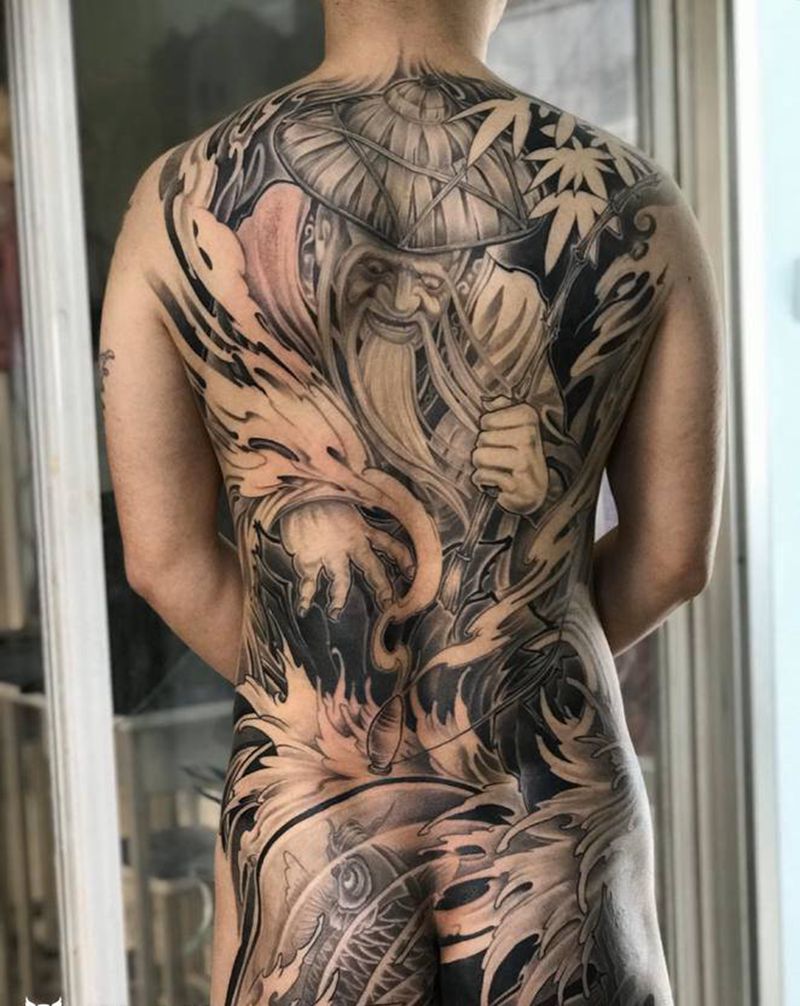 姜子牙纹身图片_背部新传统纹身图案