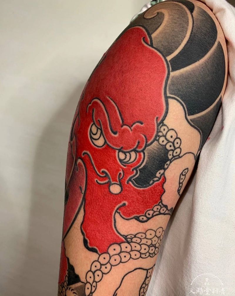 当前位置: 首页 >重庆市纹身店-义雕堂刺青纹身图案>章鱼纹身图片_手臂老传统纹身图案