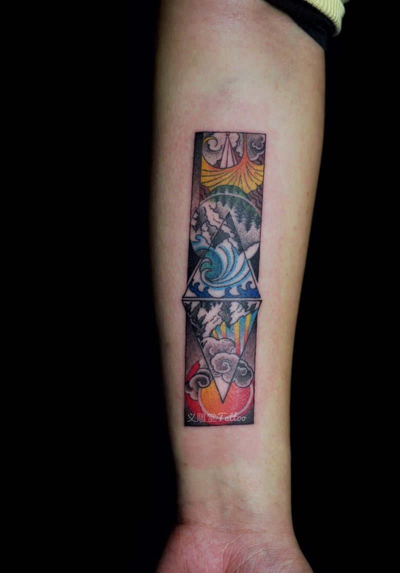彩色小图纹身图片_手臂水彩纹身图案