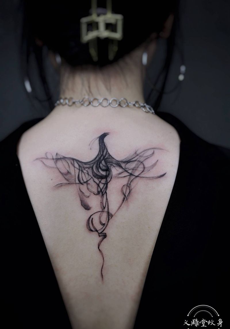 当前位置: 首页 >重庆市纹身店-义雕堂刺青纹身图案>后背凤凰纹身图片_背部水墨纹身图案