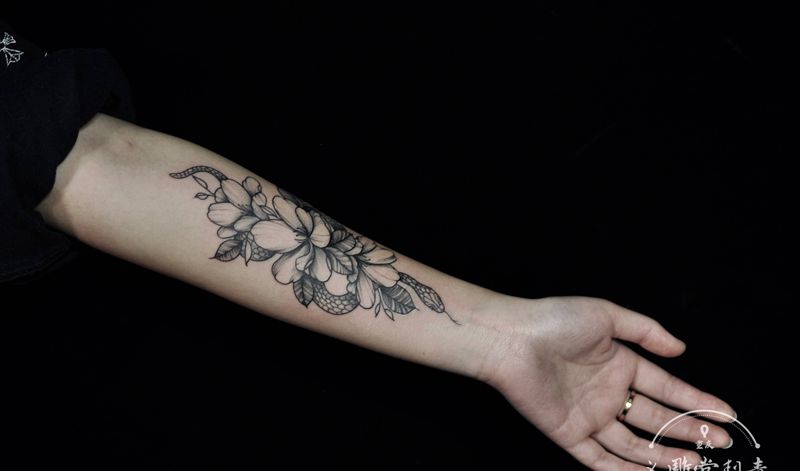 素花纹身图片_手臂点刺纹身图案