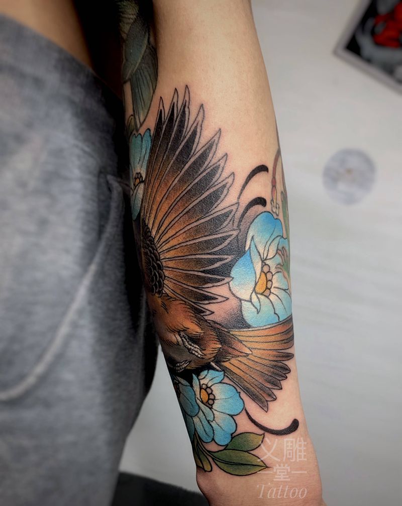 当前位置: 首页 >重庆市纹身店-义雕堂刺青纹身图案>New School麻雀纹身图片_手臂New School纹身图案