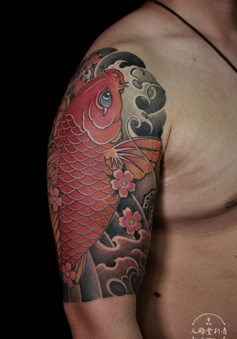 鲤鱼花臂纹身图片_手臂老传统纹身图案