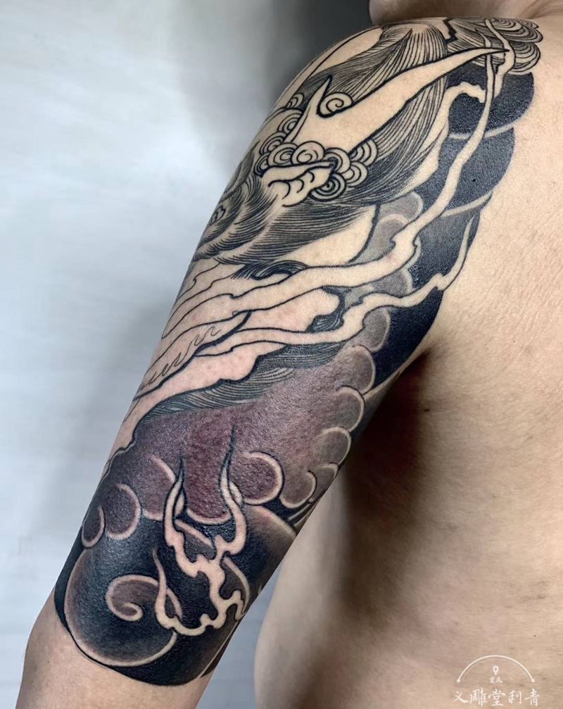 当前位置: 首页 >重庆市纹身店-义雕堂刺青纹身图案>半胛遮盖进度展示纹身图片_胸部手臂老传统纹身图案