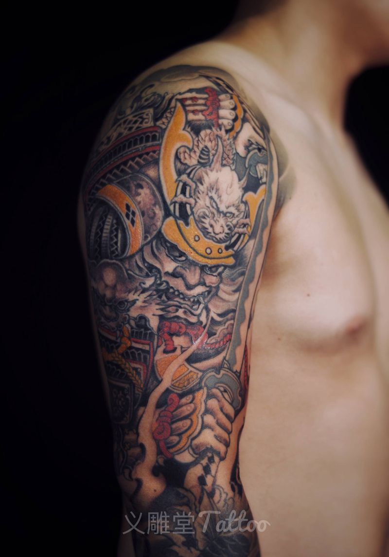 当前位置: 首页 >重庆市纹身店-义雕堂刺青纹身图案>鬼武士达摩蛋纹身图片_手臂老传统纹身图案