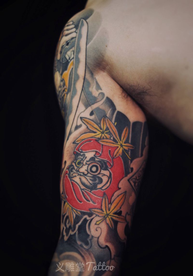 当前位置: 首页 >重庆市纹身店-义雕堂刺青纹身图案>鬼武士达摩蛋纹身图片_手臂老传统纹身图案