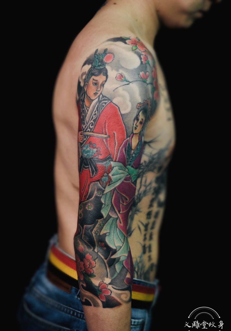 梁祝题材花臂纹身图片_手臂老传统纹身图案
