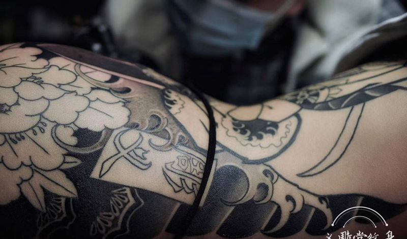 满背鬼若丸进度展示纹身图片_背部臀部老传统纹身图案