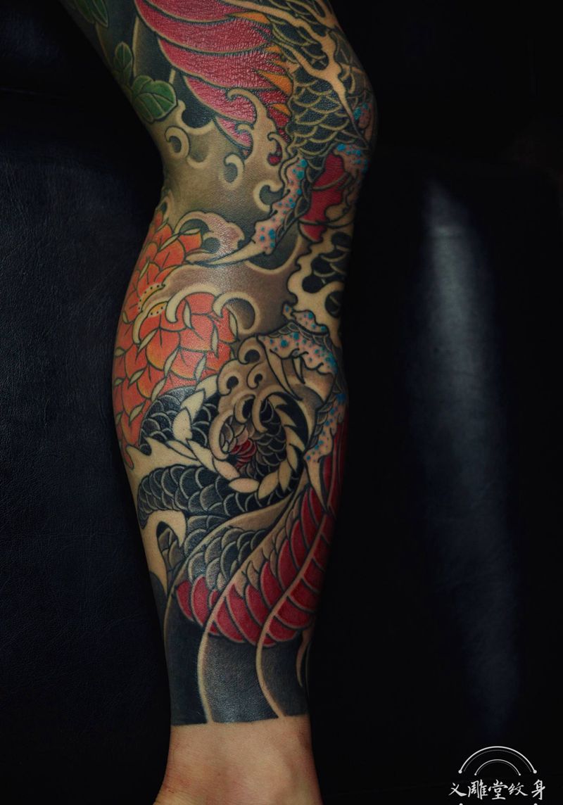 • T网红王老大花腿龙纹身图片_腿部新传统纹身图案