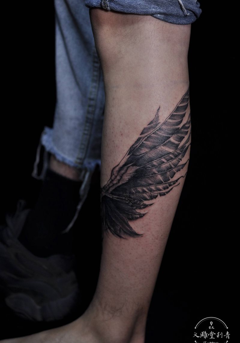 当前位置: 首页 >重庆市纹身店-义雕堂刺青纹身图案>小腿翅膀纹身图片_腿部写实纹身图案