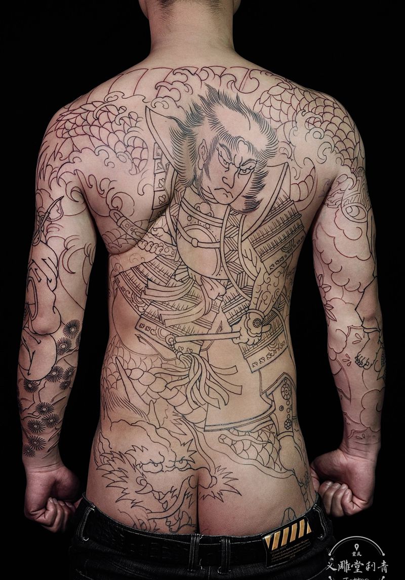 当前位置: 首页 >重庆市纹身店-义雕堂刺青纹身图案>满背全胛花臂线条纹身图片_背部手臂老传统纹身图案