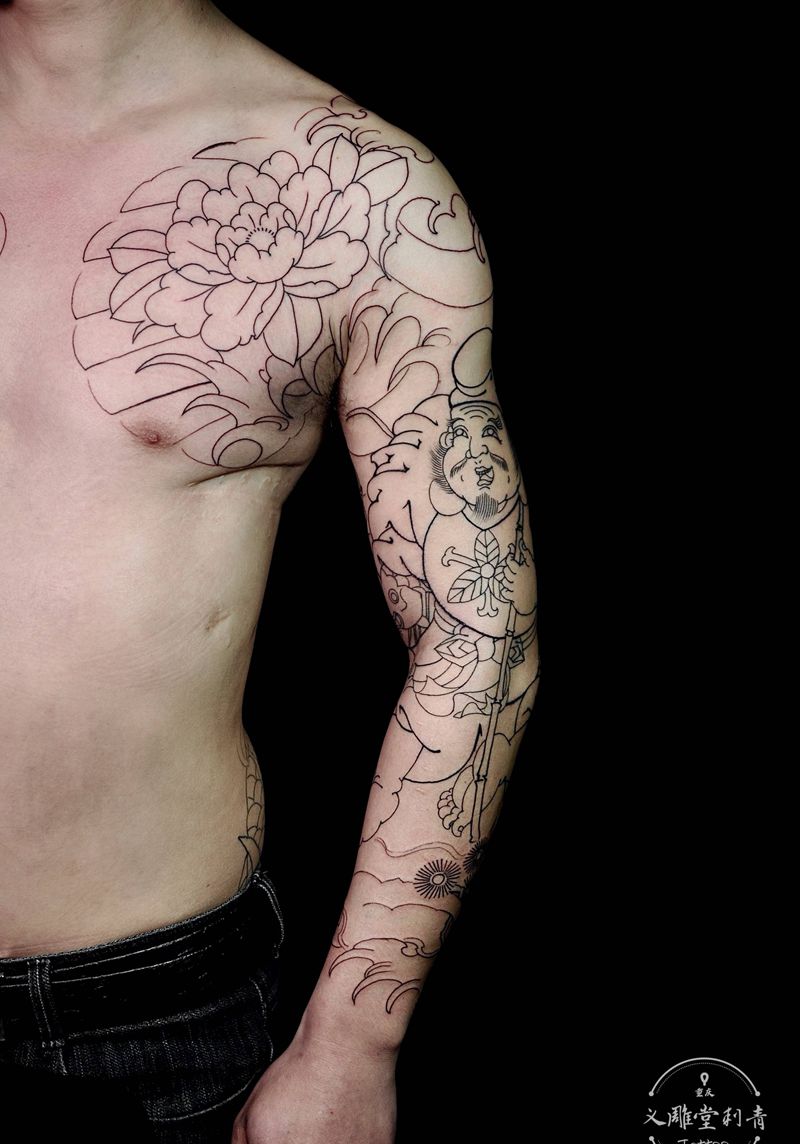 当前位置: 首页 >重庆市纹身店-义雕堂刺青纹身图案>满背全胛花臂线条纹身图片_背部手臂老传统纹身图案