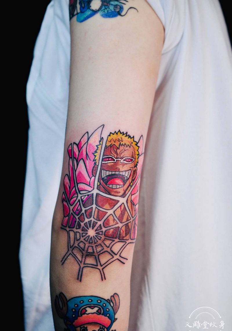 当前位置: 首页 >重庆市纹身店-义雕堂刺青纹身图案>动漫人物拼接花臂纹身图片_手臂卡通动漫纹身图案