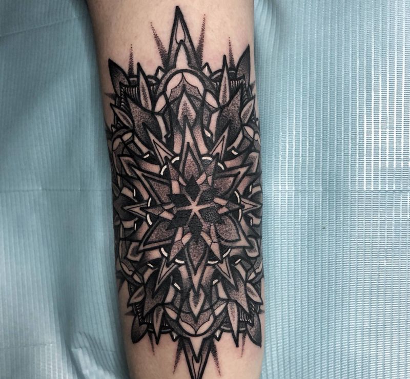 曼陀罗纹身图片_手臂点刺纹身图案
