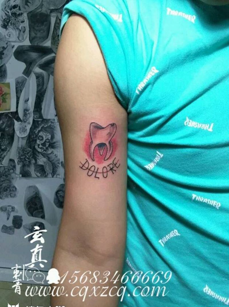 当前位置: 首页 >重庆市纹身店-重庆玄真刺青纹身图案>牙齿纹身图片_手臂清新成品纹身图案
