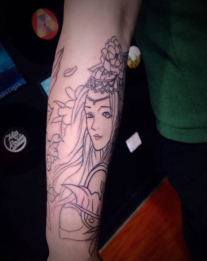 当前位置: 首页 >重庆市纹身店-本墨·刺青纹身图案>艺妓线条纹身图片_手臂新传统纹身图案