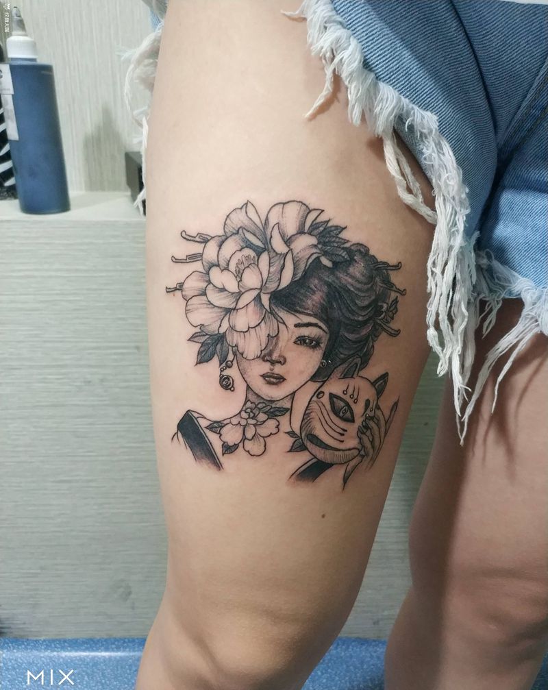 艺妓纹身图片_腿部纹身图案