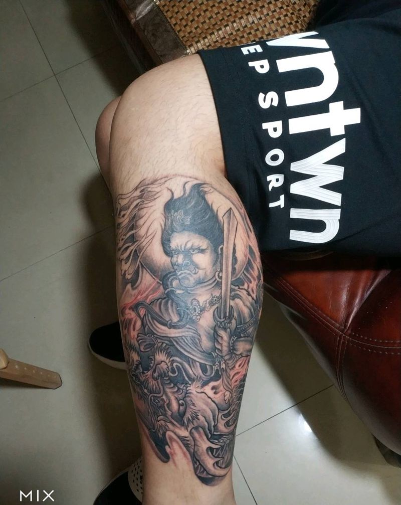 • T网红王老大花腿龙纹身图片_腿部新传统纹身图案