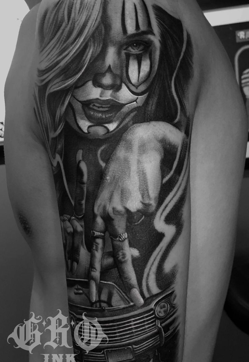 当前位置: 首页 >重庆市纹身店-GROINK 怪诞印客纹身图案>LA纹身图片_手臂腿部欧美写实西海岸奇卡诺纹身图案