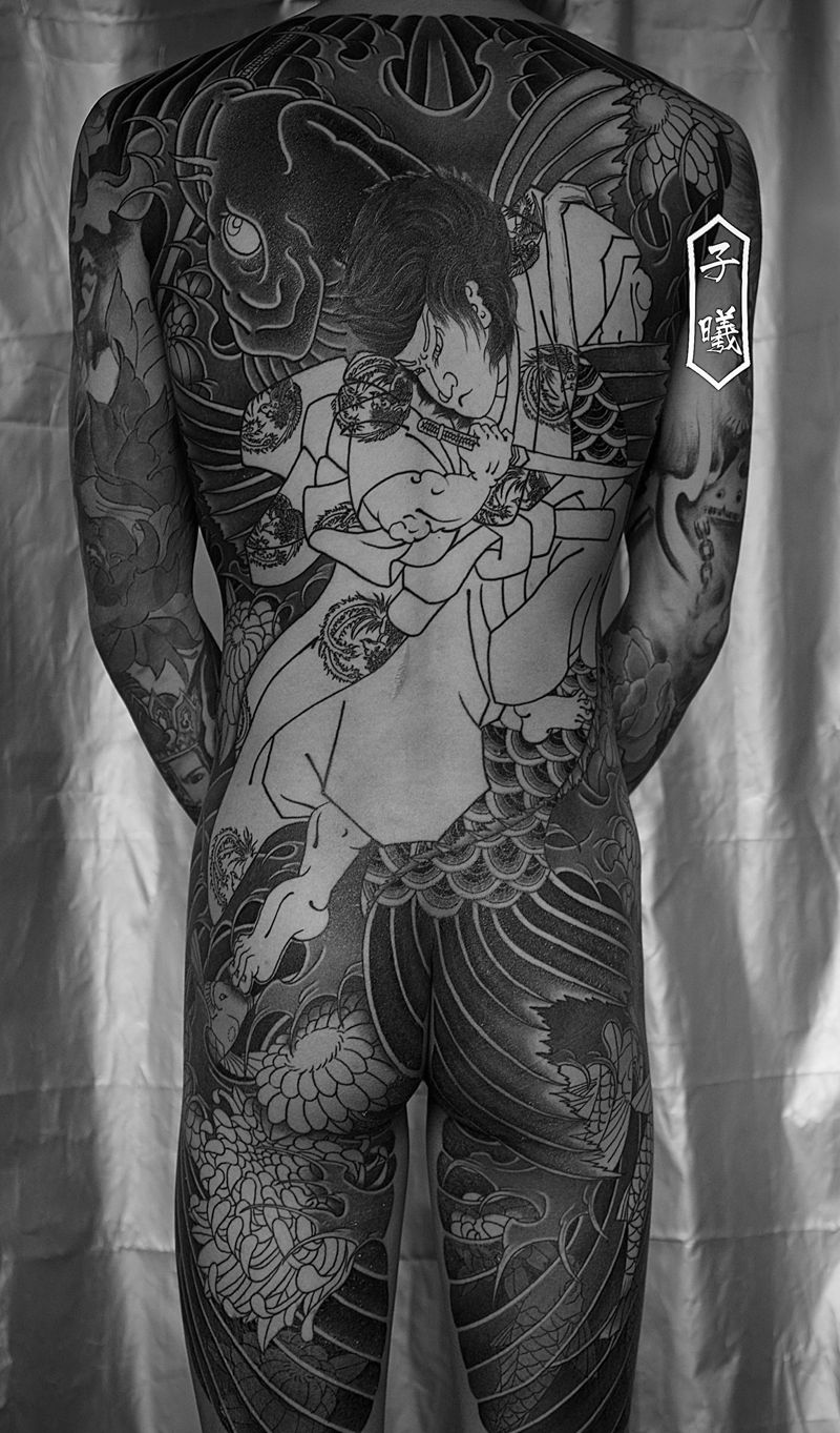 黑灰满背纹身图案