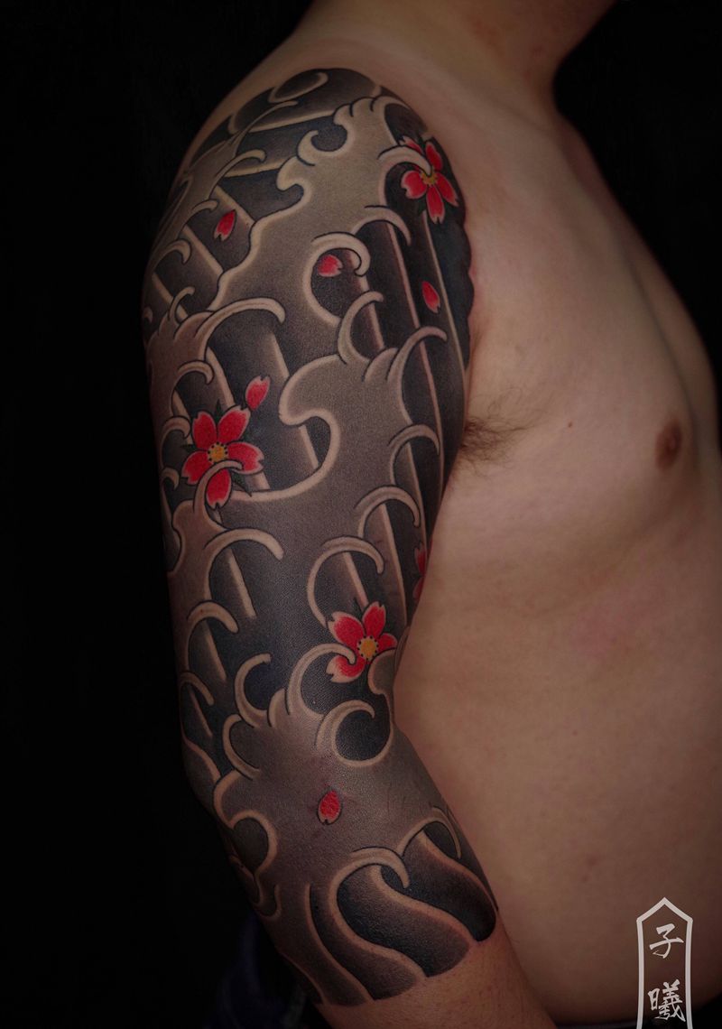 当前位置: 首页 >重庆市纹身店-逐本刺青纹身图案>浪与樱花纹身图片_手臂老传统浪樱花七分袖纹身图案
