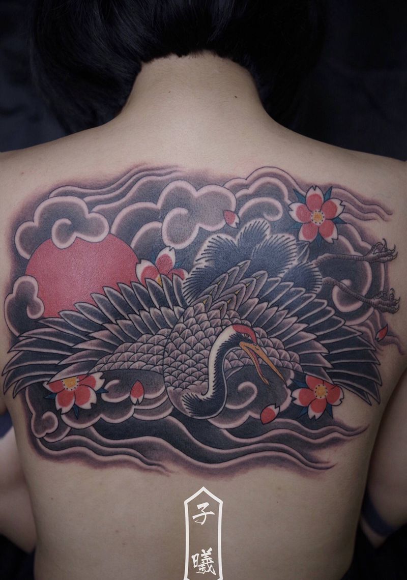 黑灰满背纹身图案