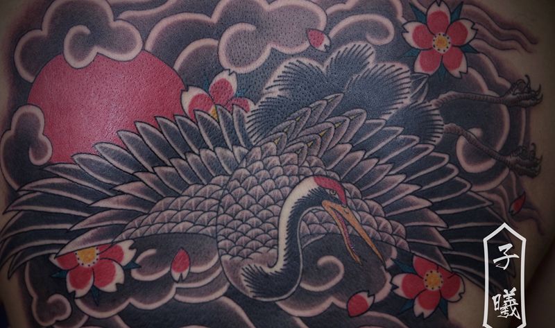 黑灰满背纹身图案