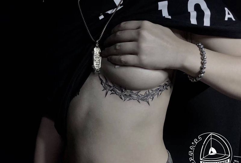 当前位置: 首页 >重庆市纹身店-逐本刺青纹身图案>荆棘纹身图片_胸部腰部点刺藤蔓胸下荆棘纹身图案