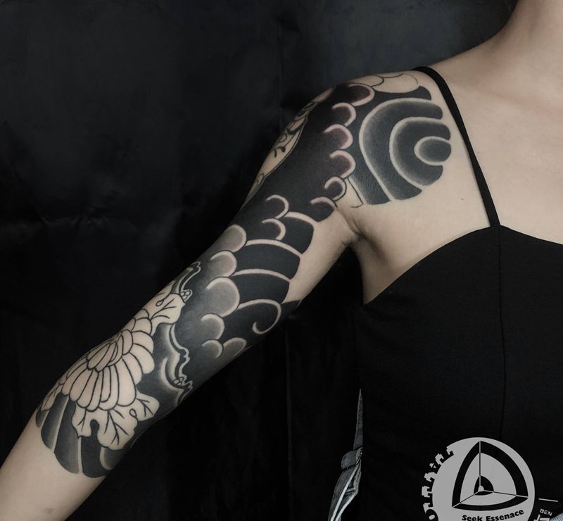 当前位置: 首页 >重庆市纹身店-逐本刺青纹身图案>《达摩蛋七分袖》纹身图片_手部手臂老传统达摩蛋菊花七分袖纹身图案