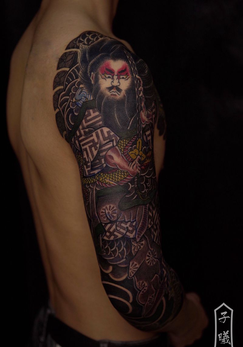 黑灰满背纹身图案