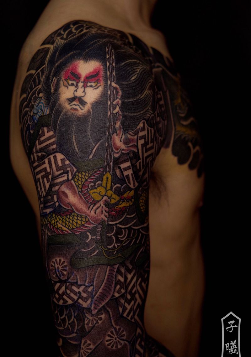 黑灰满背纹身图案