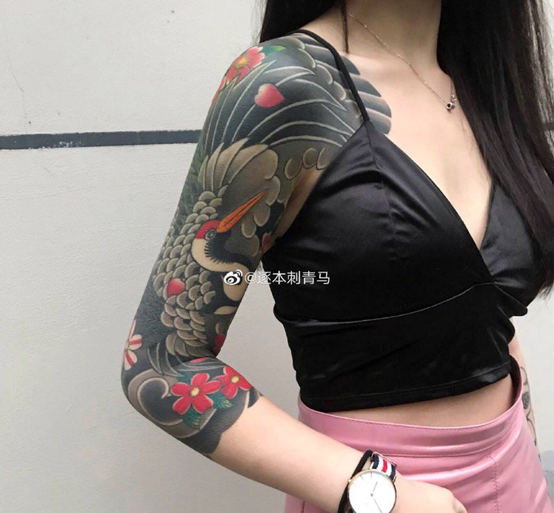 当前位置: 首页 >重庆市纹身店-逐本刺青纹身图案>日式七分袖鹤纹身图片_手臂手部老传统鹤樱花七分袖纹身图案