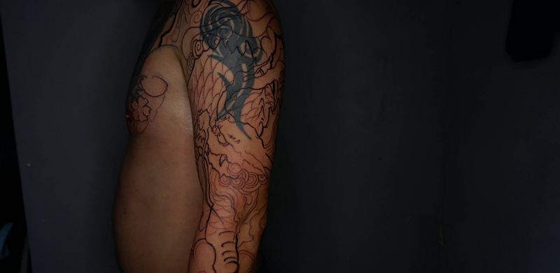 当前位置: 首页 >重庆市纹身店-辰刺青纹身图案>麒麟七分袖遮盖纹身图片_手臂新传统老传统麒麟遮盖纹身图案