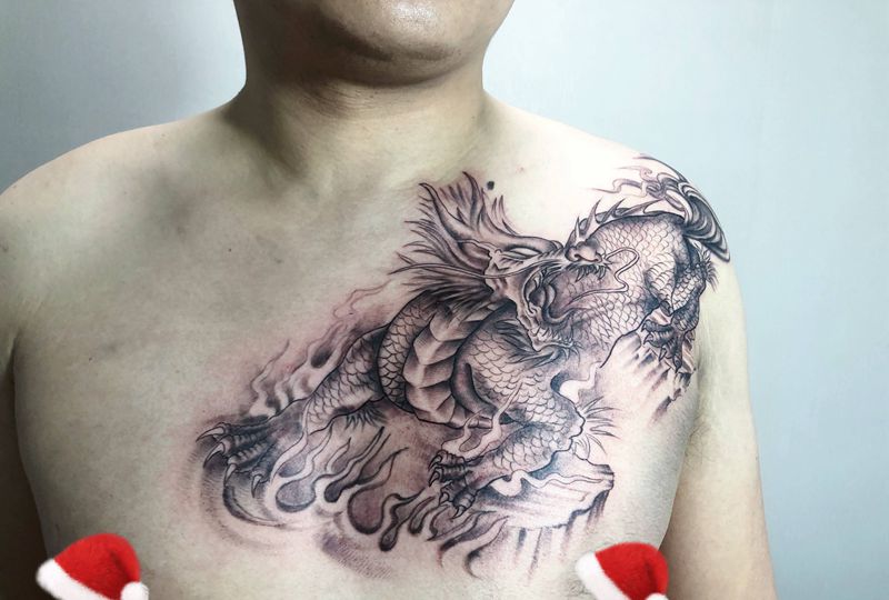 麒麟纹身图片_胸部新传统纹身图案