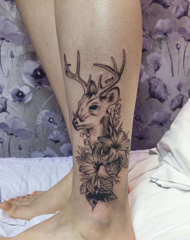 小腿素花遮盖纹身图片_脚部新传统New School遮盖素花纹身图案