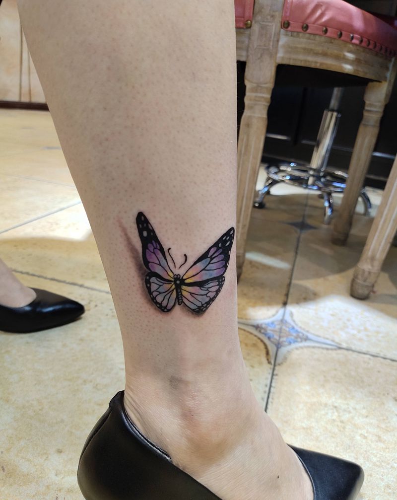 蝴蝶纹身图片_脚部腿部New School新传统蝴蝶小清新纹身图案